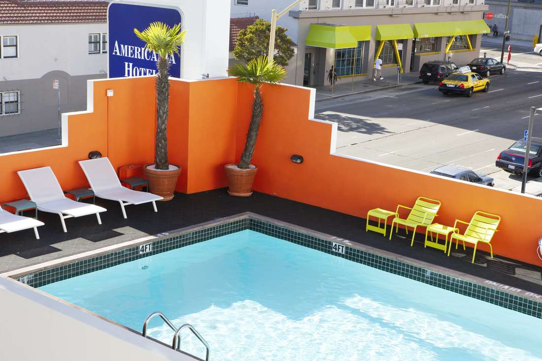 From its mid-century modern design to its playful spirit and amusing décor, the Americania Hotel is a San Francisco hotel that dares to be different. Decked out in retro-style furnishings and bold yet simple colors, each of our 143 guest rooms offers a refreshing alternative to cookie-cutter, chain hotel rooms.